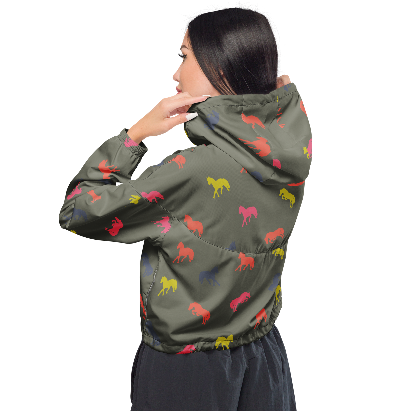 Hike in style without the rain getting in the way—this cropped windbreaker is lightweight, waterproof, and suitable for every kind of adventure. Features include side-slit pockets, breathable mesh lining, and adjustable drawcords on the hood and waist to support all your stylish outdoor looks.
