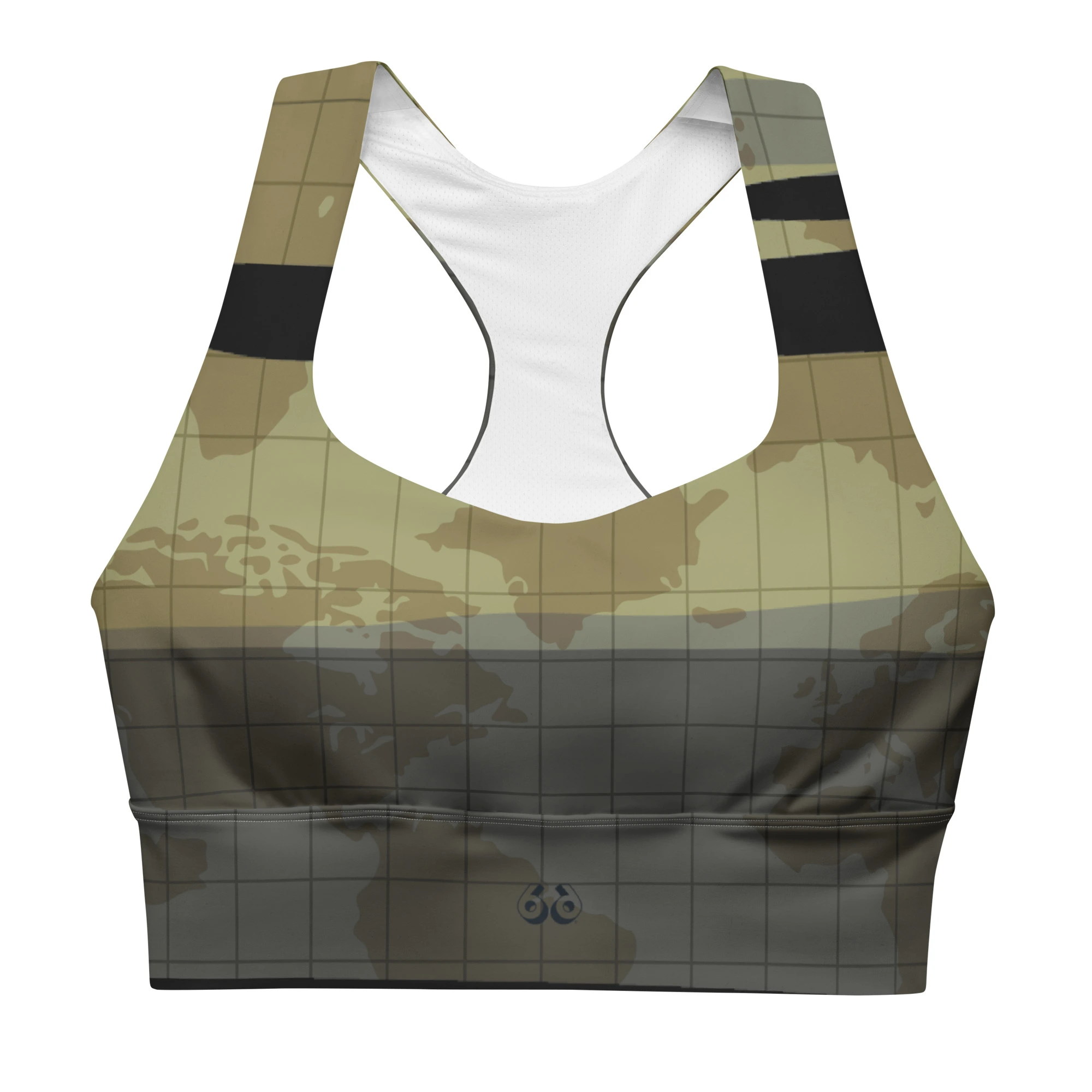 Elevate your athletic rotation with the Camouflage Squared World longline sports bra. This standout piece features a strategic camouflage pattern overlaid with a geometric grid and world map motifs. Designed to blur the lines between high-intensity performance gear and modern streetwear, it offers a “Tactical Global” aesthetic for the contemporary athlete who views the world as her training ground.