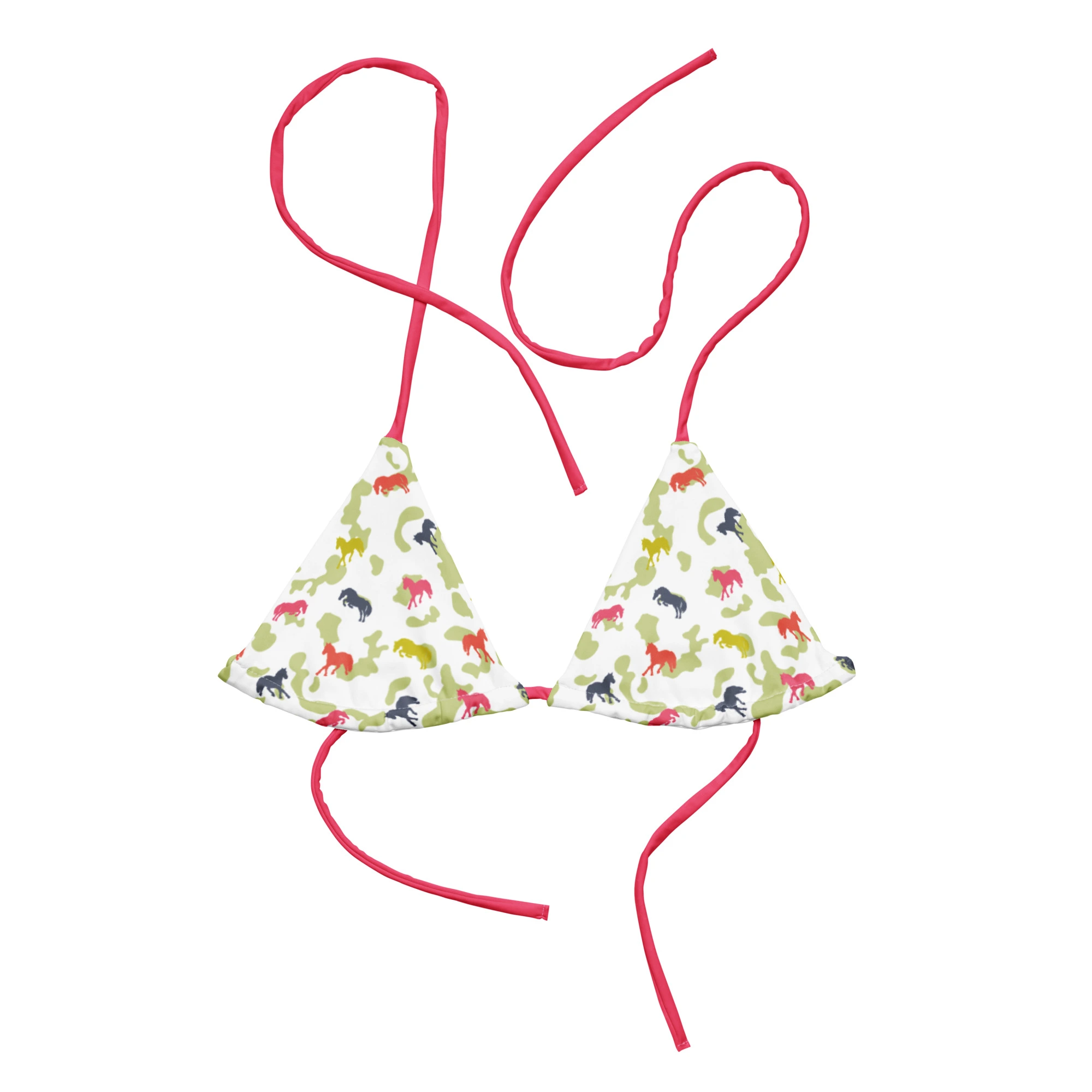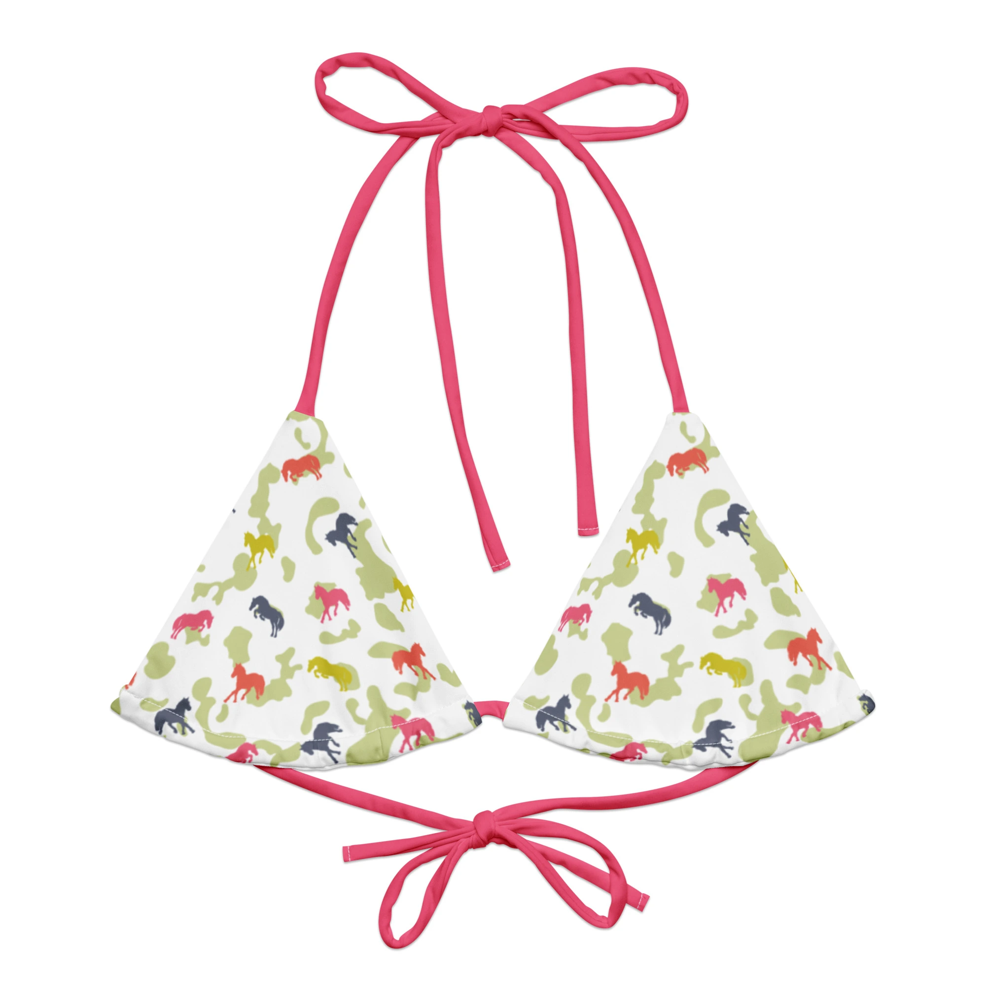 Embrace a more organic aesthetic with the Bikini Top Camouflage Natural Sporty. This top takes the classic military pattern and softens it with a palette inspired by coastal landscapes. It’s designed for the woman who wants a look that is both grounded and high-fashion, without compromising on the technical features needed for an active day at the beach.