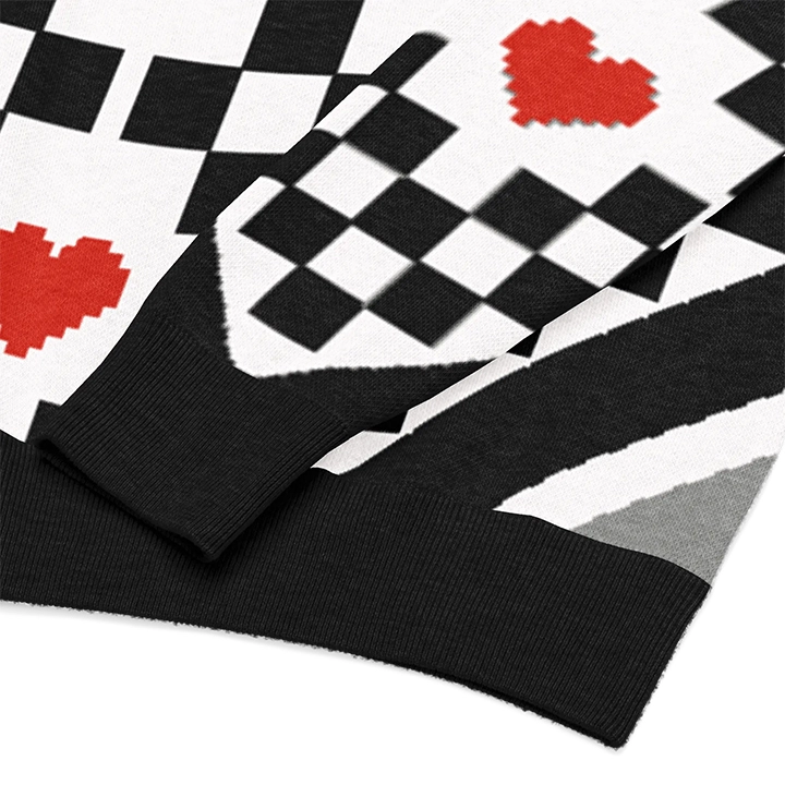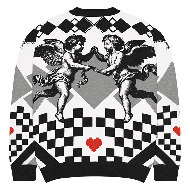 Wear the oversized Pixel & Love sweater, which blends art and digital design in an explosion of iconic style. Its black and white checkered pattern, embellished with a pixelated red heart and vintage-style angels, creates a glamorous yet casual and relaxed look. The Pixel & Love sweater is available here in your dedicated street store.