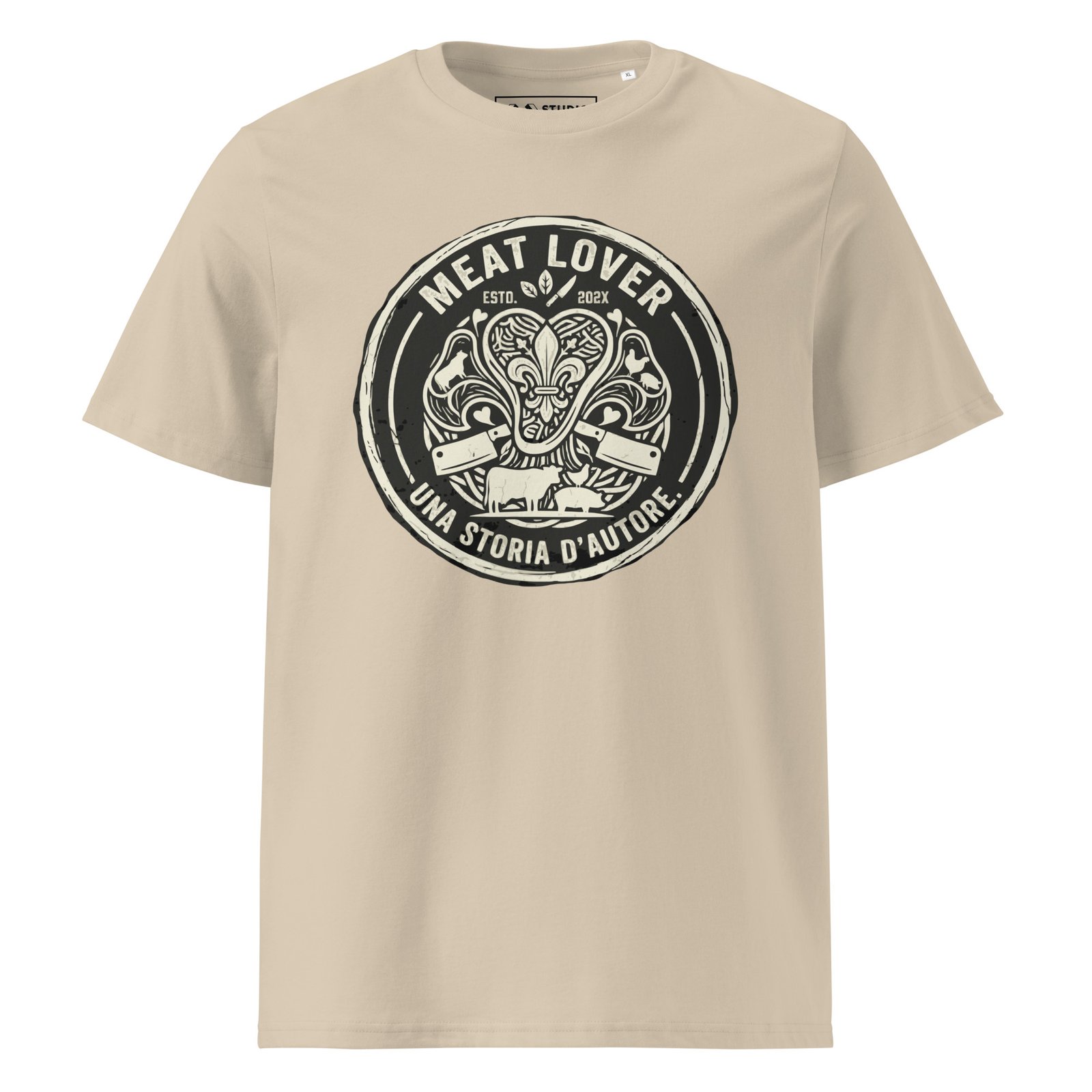 A tribute to the art of Tuscan butchery: the Meat Lover T-shirt celebrates the excellence of raw materials through a signature design that combines craftsmanship, history, and the superior quality of 100% organic cotton.