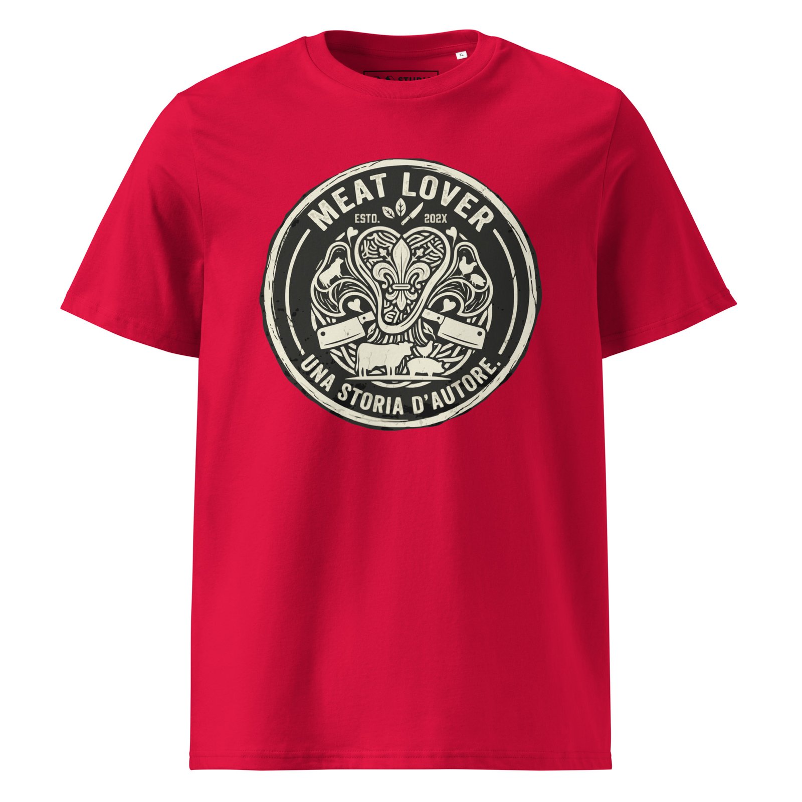 This t-shirt is more than just a piece of clothing, but a visual tribute to a centuries-old tradition. Featuring a circular, artisan-inspired design, the graphic captures the essence of Tuscan culinary culture: the Florentine lily, the tools of the trade, and the slogan “Una Storia d’Autore,” elevating the Meat Lover concept to a true philosophy of life based on quality and respect for one’s roots.