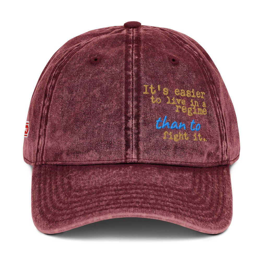 Make your voice heard without saying a word with The Rebel Writer Vintage Cap. This isn’t just a hat; it’s a conversation starter. Featuring a deep burgundy, washed-out finish and intricate embroidery, this cap carries a powerful message: “It’s easier to live in a regime than to fight it.” It’s designed for the thinkers, the writers, and the rebels who appreciate a worn-in, soulful aesthetic.
