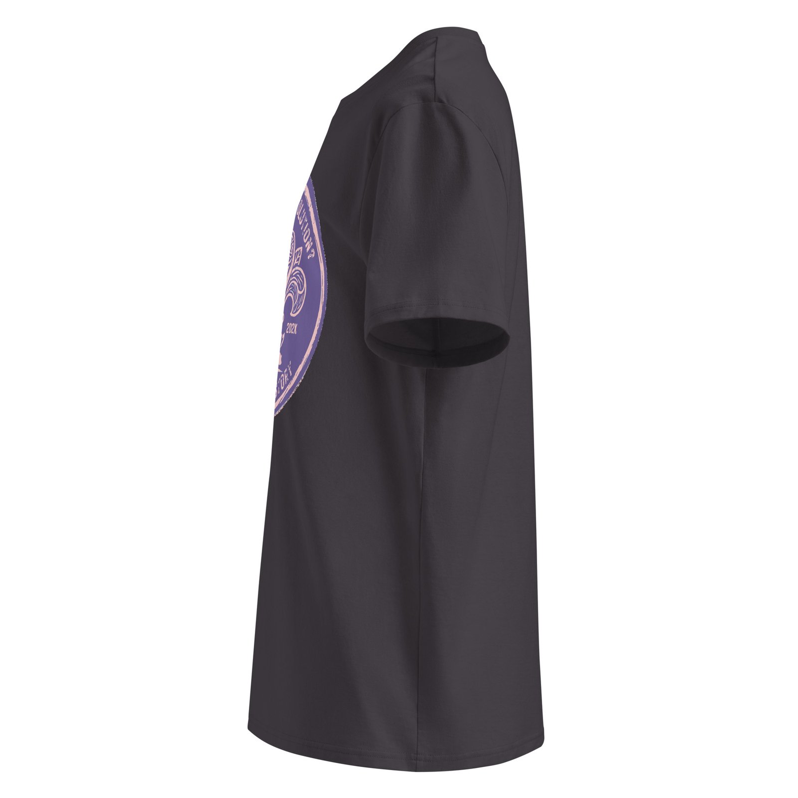 This edition is inspired by the intersection of classic heraldry and 80s synthwave street art. The Deep Purple tones provide a mysterious, royal backdrop to the Vibrant Pink accents, making the graphic literally “pop” off the fabric. It is the definitive choice for those who want their streetwear to be a conversation starter-blending heritage symbols with a futuristic, digital-age energy.