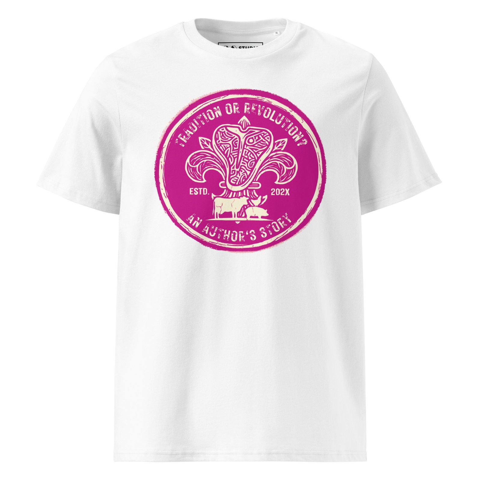 The pure energy of fuchsia meets the heart of Florence: the Tuscany Revolution Organic T-Shirt in the Shocking Pink Graffiti edition is a bold urban manifesto. A reflection on “Tradition or Revolution?” printed on 100% organic cotton, dedicated to those who want to leave a visible and conscious mark.