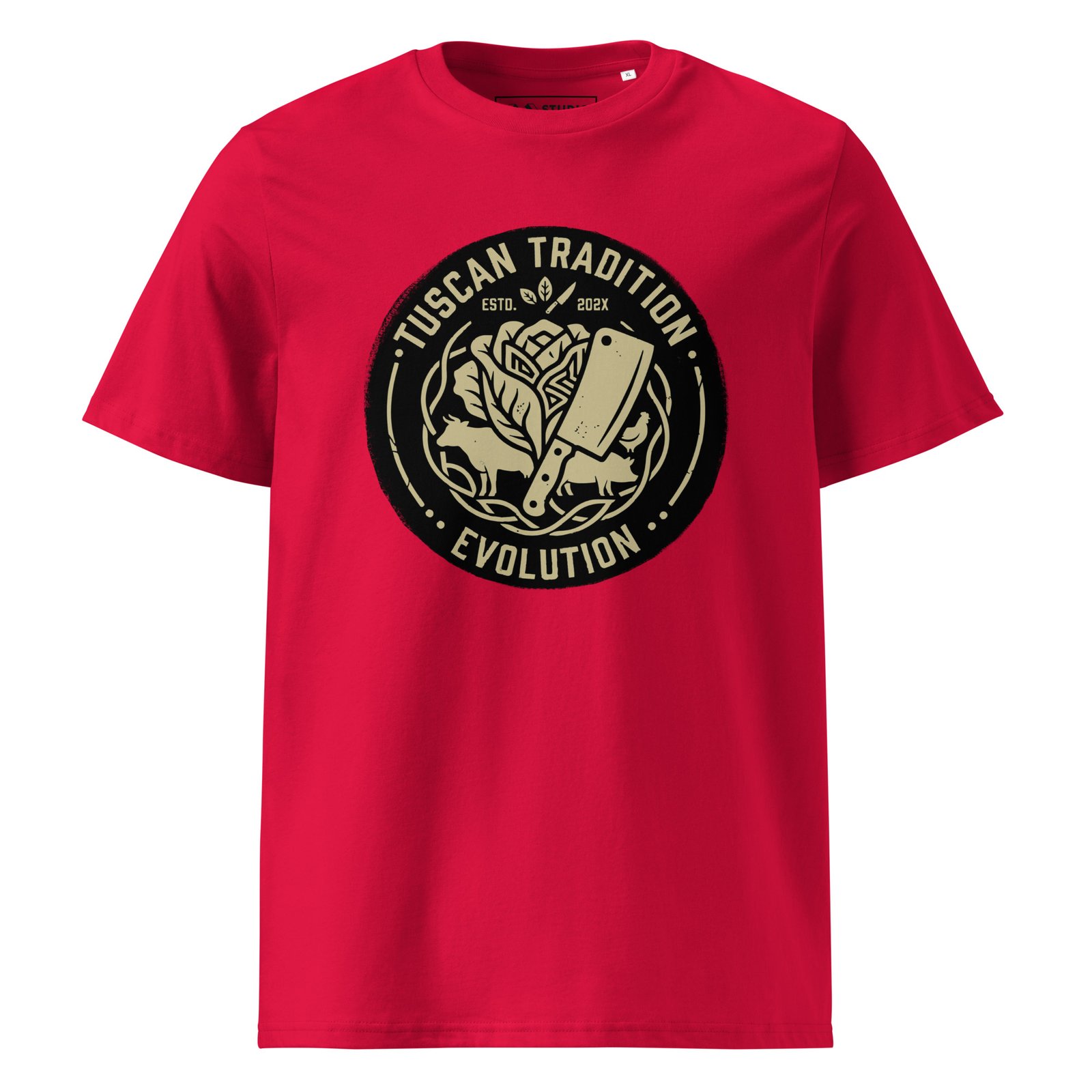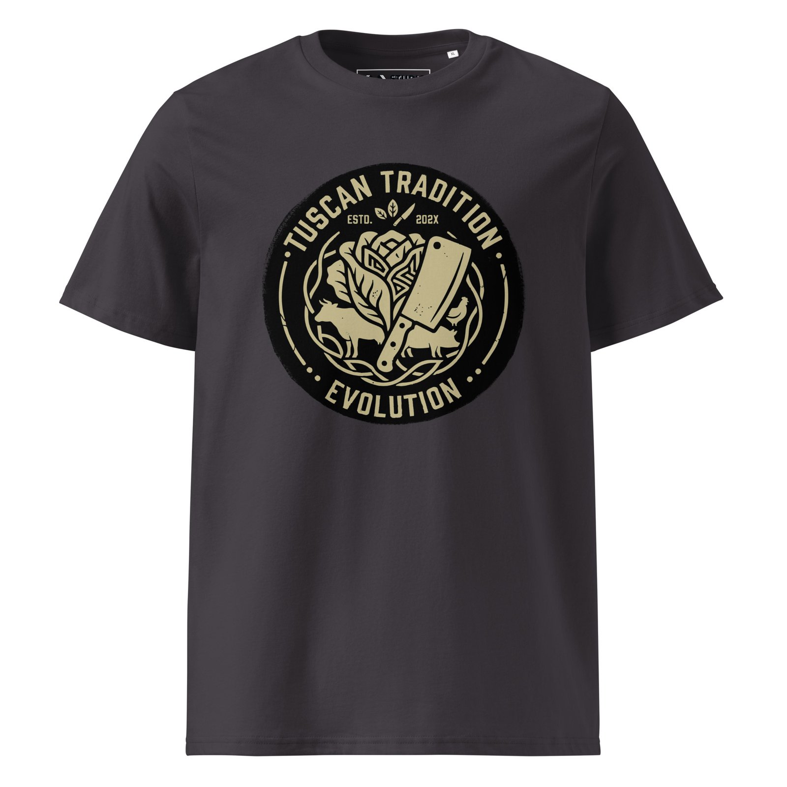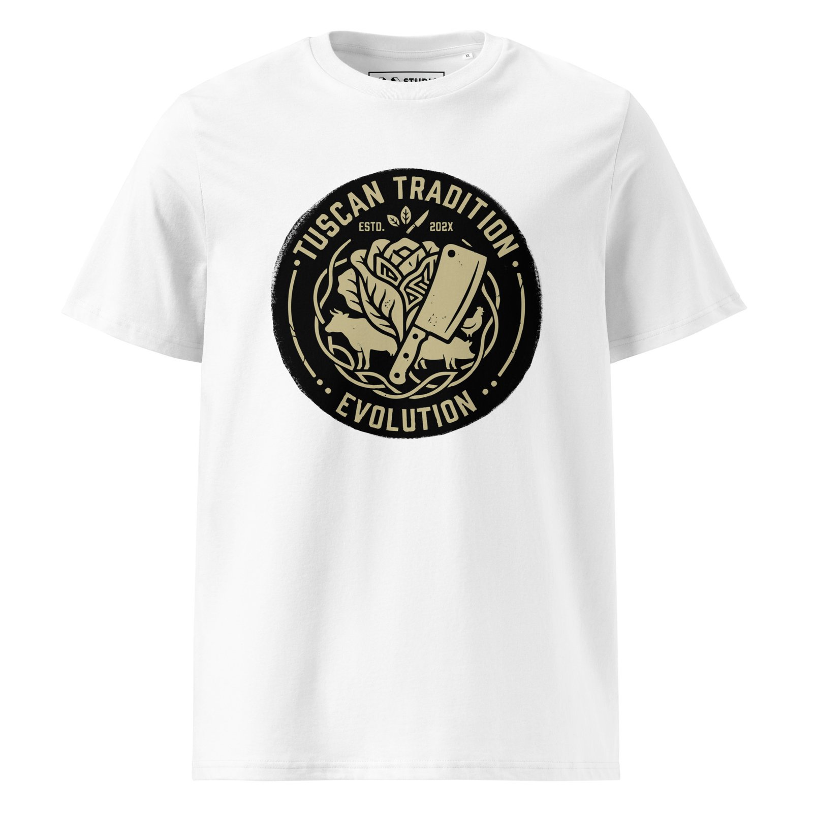 Sometimes, the strongest messages are the simplest. The Black Vintage Edition focuses on the pure power of the “Industrial Evolution” graphic. By placing a prominent artichoke at the apex of the design above the traditional animal silhouettes this tee signals a peaceful takeover. The butcher’s cleaver is reclaimed, repurposed, and ready for a new green era.