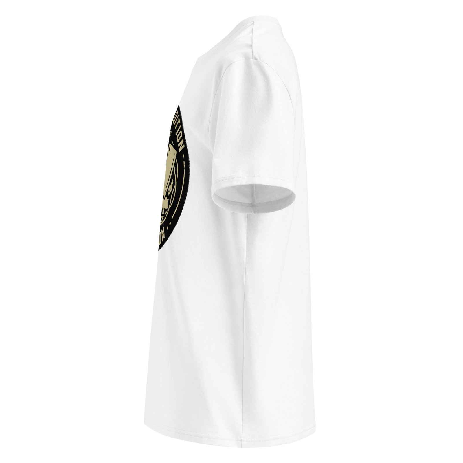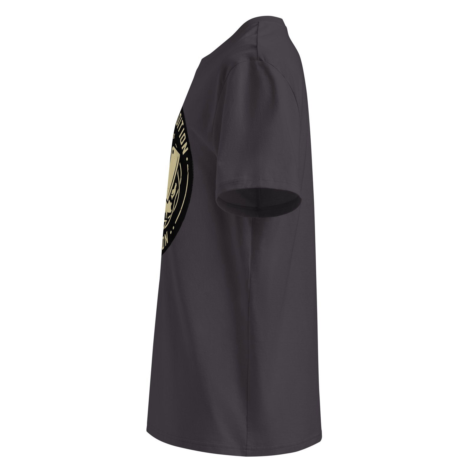 Inspired by the high-contrast aesthetic of underground zines and early streetwear, the Black Vintage print is timeless. The vertical stack of elements creates a sharp, industrial silhouette that highlights the “Evolution” claim. It’s a clean, versatile look that allows the storytelling of the repurposed tools to take center stage without distraction.
