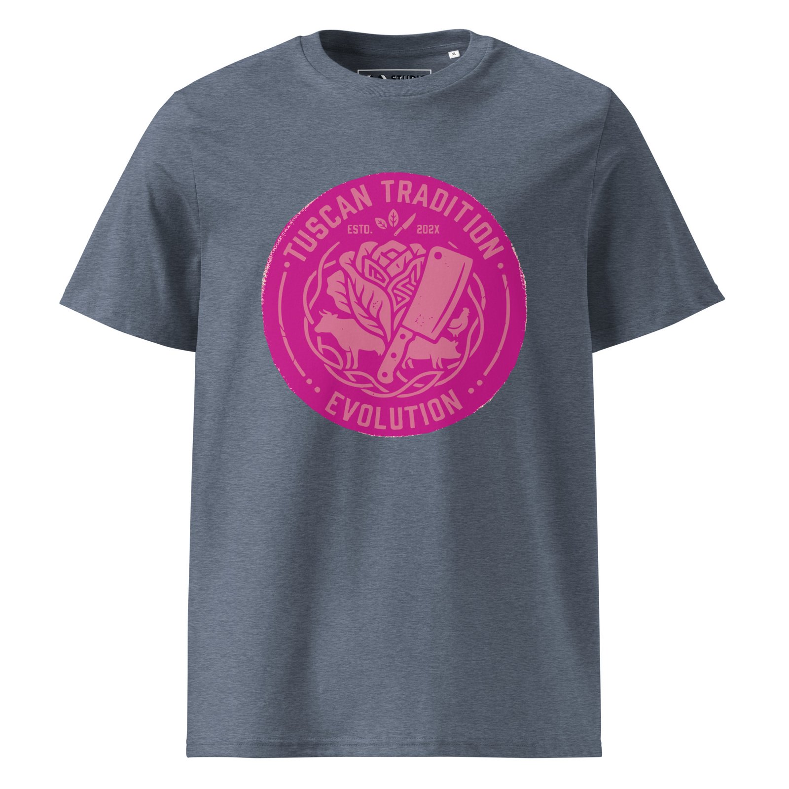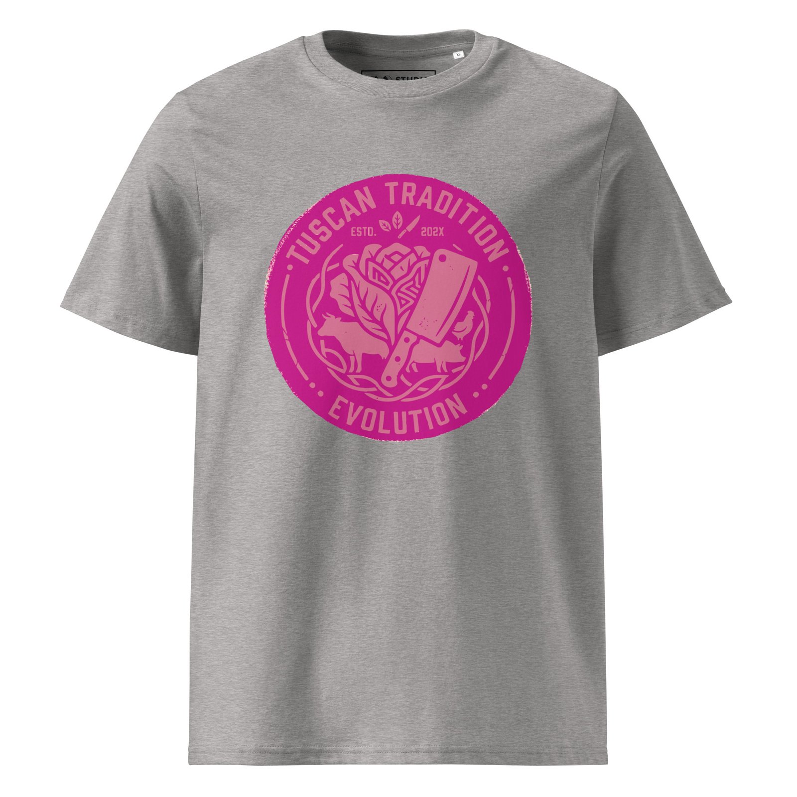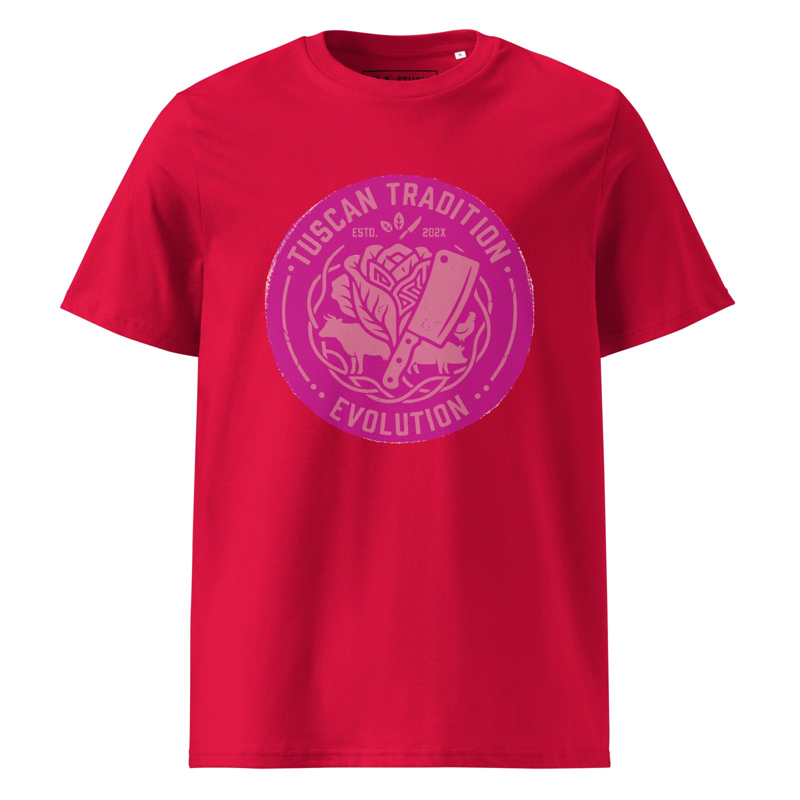 Bold, unapologetic, and visionary. The Vibrant Fuchsia Edition of our “Industrial Evolution” series takes the deconstructed butcher symbols and denches them in an electric magenta glow. The central “Evolution” claim and the repurposed cleaver now dedicated to the plant kingdom are highlighted by the sharp, spray-paint texture that defines the modern urban rebel.